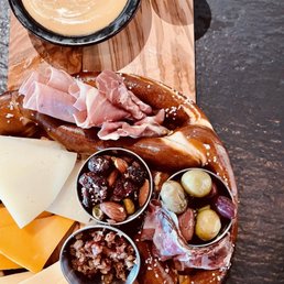 Came here last Saturday to see friends Jim and Kyle play and this place did not disappoint! I ordered the charcuterie board and Altamont Livermoron beer. The charcuterie board was wonderful, it had Prosciutto di Parma, Coppa, Sopressata, Manchego, Gouda, Tiny Dane Brie, Olives, Mixed Nuts, and Lavash. Such a large portion that I couldn't finish it and took it home to snack on later. The beer was nice and cold, delicious! Very friendly and attentive service! Overall a cute, comfortable place with tasty beer, good food and great live music. I'll definitely be back!!